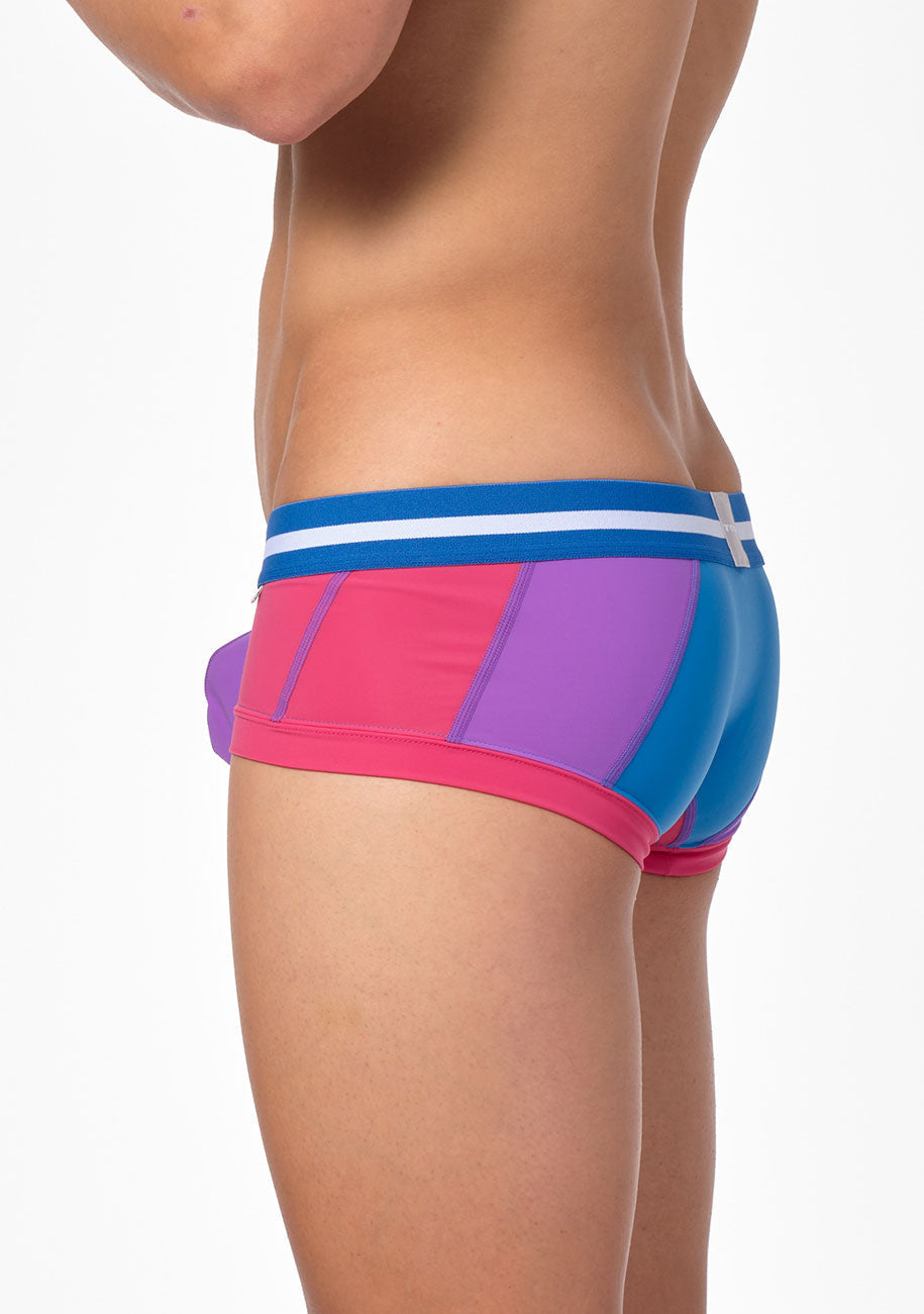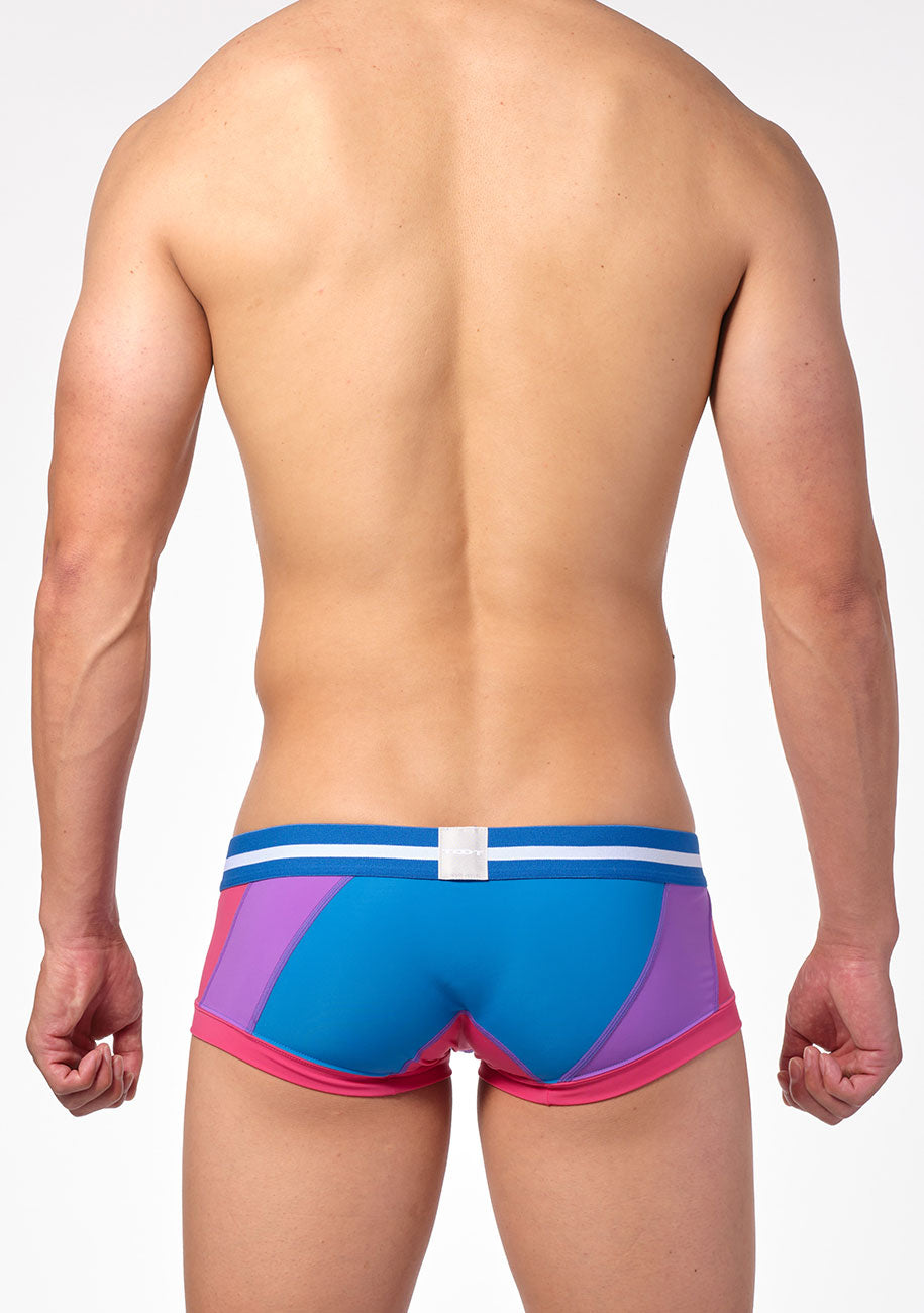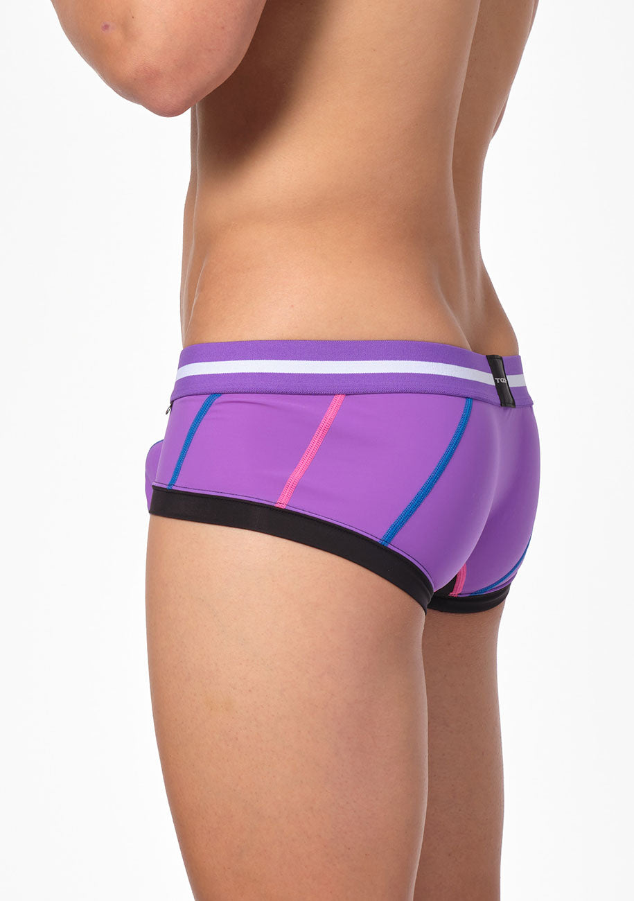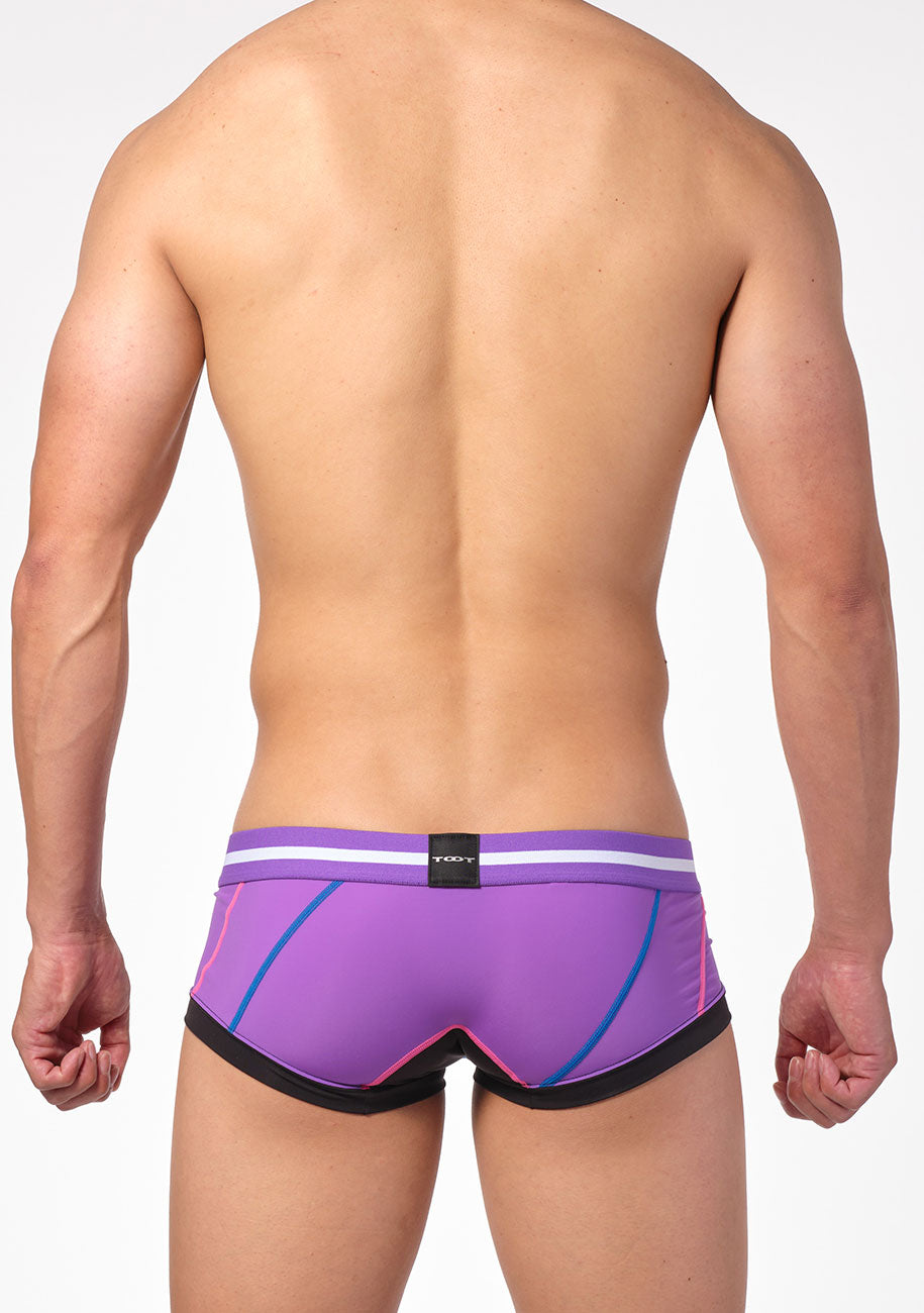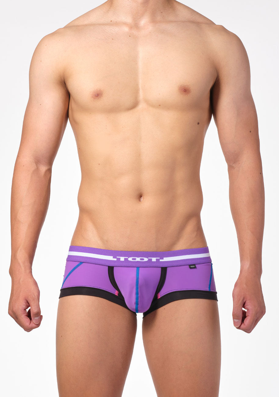 TOOT定番のストレッチナイロン生地をバイアス裁ちにして接ぎ合わせた部分にステッチを施した「バイアスステッチ スーパーnano」。ビビッドなステッチが、浮かび上がるように存在感を示すクールなボクサーパンツです。身ごろのすべてのパーツ生地をフラットシーマ縫製で丁寧に繋いだ切り替えデザインに、時間と手間をかけたこだわりの一着。ビビッドカラーが映える、パープル・ブルー・ブラックの3カラーで展開します。